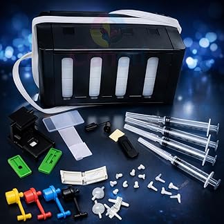 CANOFF Continuous Ink Supply System Black CISS Ink Tank Kit for Inkjet Printers, 4 Color CMYK External Tank with Tubes, Syringes,Accessories, Compatible Selected HP DeskJet & Canon Pixma Cartridges