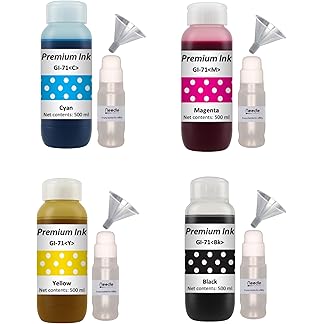 Needle GI71 Compatible Refill Ink | Made in India |for Canon Pixma G1020 G2020 G3020 G2060 G3060 G1737 G2770 G3770 G4770 G1730 G2730 G3730 Printers (CMYK 4x500gms with Empty Bottle & Funnel)