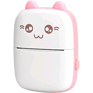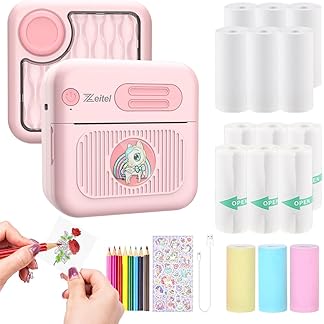 ZEITELยฎ Mini Bluetooth Thermal Printer, Portable Label Inkfree Mini Printer for Android & iOS System, Black on White Thermal Printer with 15 Rolls of Print Paper, 8 Colors of Pencils, Stickers, Pink
