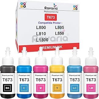 Ravaria T673 Compatible Refill Ink for EP L805 L800 L1800 L810 L850 Printer (T673 Ink 6 Color Set)