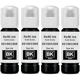 001/003 Ink Compatible for Epson Printer : L3250/L3260/L5290/L3210/L3256/L3150/L3215/ L3216/L5190/L3200/L3251/L3252/L3110/L3151/L3152/L3156/L3211/L3212/L1110/ L1250 Printer, Pack of 4 : Black