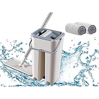 Heavy Quality Floor Mop with Bucket, Flexible Kitchen tap Flat Squeeze Bucket System Cleaning Supplies 360 Flexible Mop Head/ 2 Reusable Pads Clean