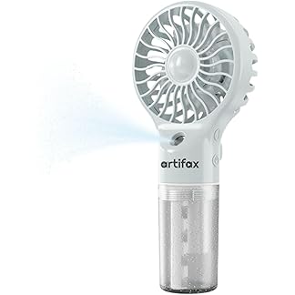 Artifax Handheld Mist Fan ART-BM-1 | Rechargeable Pocket Fan with 4 Speeds | USB Powered | Battery-Operated Spray Fan for Indoor & Outdoor Use (Grey) | Includes 1-Year Warranty
