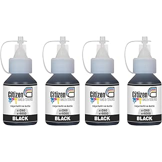 BT6000 Refill Ink Bottle | Compatible with Brother Printers – DCP-T220, DCP-T226, DCP-T420W, DCP-T426W, DCP-T520W, DCP-T525W | High Print Quality | Leak-Proof (Pack 4 : Black)