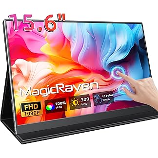 MagicRaven Portable Touchscreen, 15.6″ 1080P 60Hz Laptop Monitor, Lightweight Dual USB C HDMI Second Gaminig Display with Speakers, Travel Monitor for PS4/5 Xbox Switch MAC PC Phone