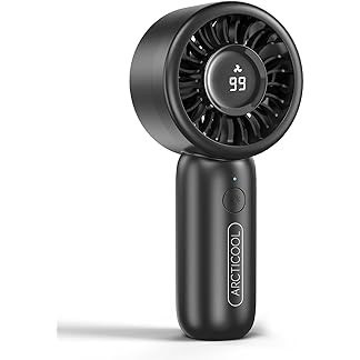 ARCTICOOL Portable Mini Fan with Digital Display – 7500RPM Ultra-Fast Portable Hand Fan, 2000mAh Rechargeable Battery, Pocket-Sized Cooling for Makeup, Travel, and Outdoor Use (Black)