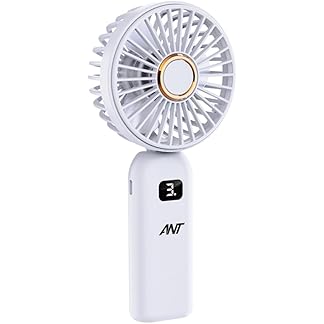 Ant Turbo10 Mini Portable Handheld Fan Quite Powerful Built in Rechargeable Battery-operated Fan with Mobile Holder Digital Display 3 Speeds 90°Adjustable Personal Small Hand Fan Travel Makeup_White