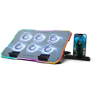 EvoFox Typhoon 2 Laptop Cooling Pad | 6 High-Speed Fans, RGB Lights, Adjustable Stand & Dual USB Ports, Premium Metal Laptop Cooler Pad for Gaming Laptops, Quiet Operation & Ergonomic Design (Blue)