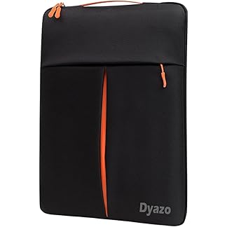 Dyazo 14-14.1 Inch Laptop Sleeve Case with Handle & Front Pocket | Water Resistant & Shockproof Notebook Bag | Compatible for Compatible for MacBook, Lenovo, Dell, HP, Acer and Asus (Black & Orange)