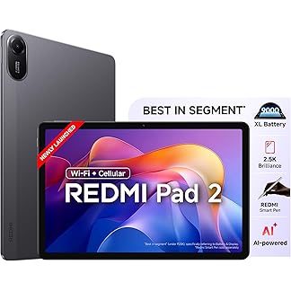 Redmi Pad 2 Wi-Fi + Cellular, Active Pen Support, 27.94cm(11″) Model, 2.5K Sharp & Clear Display, 4GB, 128GB, All Day & More 9000mAh Battery, AI-Enabled, Dolby Atmos, HyperOS 2, Graphite Grey
