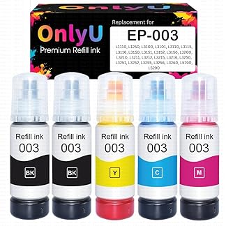 ONLYU 003 Refill Ink Compatible for Epson L3110, L3150, L3250, L3252 L3115, L3116, L3101, L3210, L3215, L3216, L3151, L3152, L3156, L5190 Printer (3 Color + 2 Black)