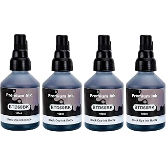 KOSH BTD60 BT5000 Refill Ink Compatible for Brother DCP-T300 T310W T500W T520W T220 T700W T420W T425W T426W T428W T720DW T725DW T820DW T810W T910DW T920DW Printers (4, Black Pack of 4)