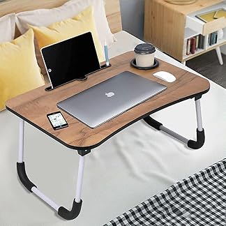 TEKCOOL Study Table Foldable Wooden Laptop Bed Tray Table, Multifunction Lap Tablet Desk with Cup Holder, Perfect for Eating Breakfast, Reading Book, Working, Watching Movie On Bed__