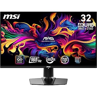 MSI MAG 321UP QD-OLED 31.5 Inch 4K UHD Gaming Monitor – 3840 x 2160 Quantum Dot OLED Panel, 165Hz / 0.03ms, 99% DCI-P3, ΔE≤2, DisplayHDR True Black 400 – DP 1.4a, HDMI 2.1(UHD@165Hz), USB Type-C