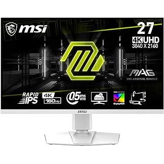 MSI MAG 274URFW 27 Inch 4K UHD Gaming Monitor – 3840×2160 Rapid IPS Panel, 160 Hz/0.5ms (GtG, Min.), 133% sRGB Colour Gamut, Frameless Design, VESA DisplayHDR 400 – DisplayPort 1.4a, HDMI, USB Type-C