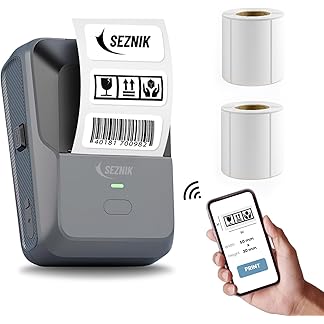 SEZNIK Josh Bluetooth Thermal Label Printer | Inkless Mini Rechargeable | MRP, Barcode, Excel File Printing | Cloud, Mobile, Desktop | Jewellery, Round Labels | Up to 2-inch Print | 1 Year Warranty