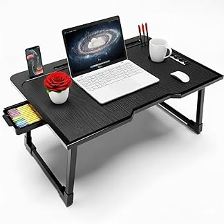 Derbus Wooden Mini Laptop Table for Bed, Smart Study Table with Drawer kids (MK-K-BLACK)
