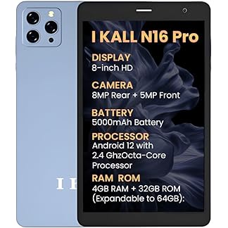 IKALL N16 Pro Smart Tablet – 8 Inch HD Display, Octa Core Processor, 4GB RAM + 32GB ROM, Android 12, 4G Voice Calling, Long-Lasting 5000mAh Battery (Blue)