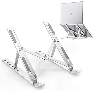ZUSHTRIV Foldable Height Adjustable Laptop Stand Tabletop, Metal Frame, Ergonomic Design, Overheating Protection, Portable Workstation for Home, Office, Bed, and Study Use