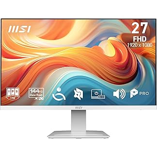 MSI PRO MP273W E14A 27-Inch FHD Computer Monitor, 1920×1080 IPS, 144Hz, 1ms, HDR Ready, Adaptive-sync, Eye Care, Built-in Speaker, HDMI 2.0, DP 1.2a, Frameless, Tilt Adjustable, Vesa Mount, White