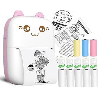 MTC Mini Bluetooth Thermal Printer, Portable Label Printer Inkfree Printer for Android & iOS System, Black on White Thermal Printer with Roll of Print Paper, Stickers
