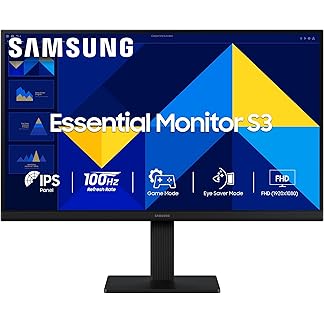 Samsung 27″ (68.6 cm) S3 Flat Monitor|Super Slim Borderless Design|IPS Panel|FHD 1920 x 1080|100 Hz|5 ms|Ports-HDMI,VGA|Game Mode||Eye Saver Mode||Wall Mountable|LS27D300GAWXXL|Black
