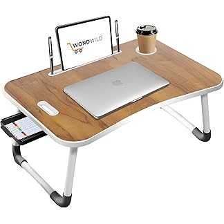 WONDWILD Premium Foldable Wooden Mini Laptop Table for Bed, Study Table with Drawer, Tablet/Mobile Holder for Kids & Adults >> (C Bidding Wood)