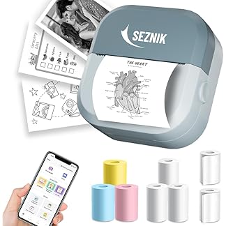 SEZNIK Mini Printer, Inkless, Thermal, Bluetooth, Portable Printer, Compatible Android, iOS Mobile. 1 Year Warranty (EON-PhantomBlue)