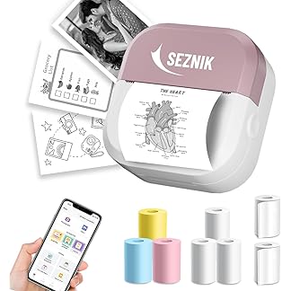 SEZNIK Mini Printer, Inkless, Thermal, Bluetooth, Portable Printer, Compatible Android, iOS Mobile. 1 Year Warranty (EON-Stealth Velvet)