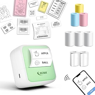 SEZNIK Mini Printer, Inkless, Thermal, Bluetooth, Portable Printer, Compatible Android, iOS Mobile. 1 Year Warranty (MiniX-Green)