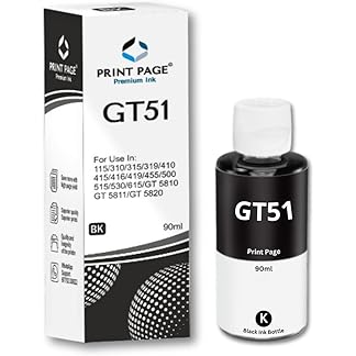 Print Page GT51 Refill Ink Bottle Compatible for Ink Tank Printers 115, 310, 315, 319, 410, 415, 416, 419, 455, 500, 515, 530, 615, GT 5810, GT 5811, GT 5820 (Black 90ml – 1 pcs)