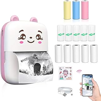 MOROVIK Mini Bluetooth Thermal Printer,(1Year Warranty) Portable Label Printer Inkfree Printer for Android & iOS System, Black on White 5 Roll of Print Paper, Stickers, Pink (Style 3)