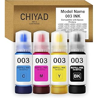 CHIYAD – 003 Ink Compatible for Epson L3250 L3260 L5290 L3210 L3256 L3150 L3215 L3216 L5190 L3200 L3251 L3252 L3110 L3151 L3152 L3156 L3211 L3212 L1110 Printer (4 Colour Set) (CMYK)