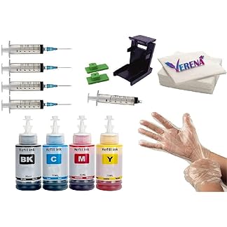 Verena Tool Kit Multi-color Refill Ink Set Compatible for Canon TS207 Single Function Printer Black Tri Color Combo Pack Ink Bottle