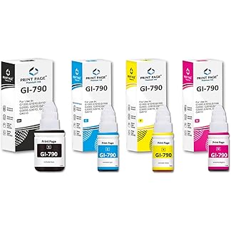 Print Page GI 790 Refill Ink Bottle Compatible for Printers G1000, G1010, G1100, G2000, G2010, G2100, G3000, G3010, G3100, G4010 (4 Color Combo) (Black – 135ml, C/Y/M – 70ml Each)