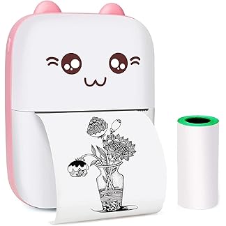 G Traders Mini Bluetooth Thermal Printer, Portable Label Printer Inkfree Printer for Android & iOS System, Black on White Thermal Printer with Roll of Print Paper, Stickers