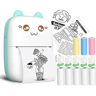 WireScorts Mini Bluetooth Thermal Printer, Portable Label Printer Inkfree Printer for iOS & Android System, Black on White Thermal Printer with Roll of Print Paper, Stickers – Blue