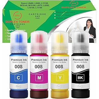 Duplex DTC – 008 Ink Compatible for Epson L6460, L6490, L15180, M15140, M15180, L6570, L6580, L15150, L15160 Printer (4 Set of Colour)