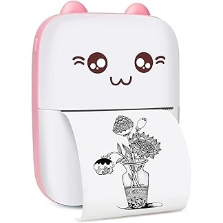 MOROVIK Mini Bluetooth Thermal Printer, Portable Label Printer Inkfree Printer for Android & iOS System, Thermal Printer with 5 White & 3 Colour Print Paper,Stickers,Beautiful Carry Beg (Style 5)
