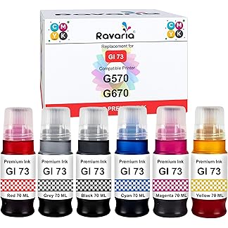 Ravaria GI 73 Compatible Refill Ink for Canon Pixma G570 / G670 Printer – (70ml x C/M/Y/Bk/R/GR) (GI 73 Ink Full Set (6 Color))