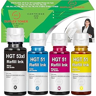 Duplex DTC Refill Ink for HP GT53XL & GT 52 for HP Ink Tank 115 310 315 319 410 415 416 419 455 500 515 520 525 530 589 615 750 790 670 GT5810 GT5811 GT5820 (GT53XL + GT 52CMY)