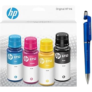 HP GT52 CMY / GT53 Blk Ink Bottle 7K3W9AA (Set of 4) with 3in1 Multi-Function Mobile Phone Stand, Stylus Pen, Anti-Metal Texture Rotating Ballpoint Pen (Very Colors)