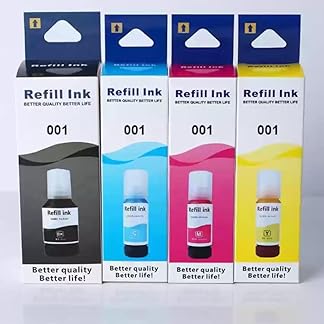 EP 001 Refill Ink Compatible for Epson Eco Tank Printers L4150, L4160, L6160, L6170, L6190, L605, L655, L1455 (Black 70ml, Magenta 70ml, Cyan 70ml, Yellow 70ml) – Set of 4 Colors