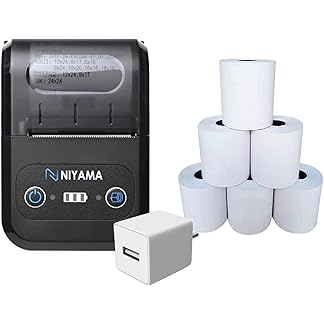 DRwilla Mini Bluetooth Thermal Printer, Portable Label Printer Inkfree Printer for Android & iOS System, Black on White Thermal Printer with Roll of Print Paper, Stickers
