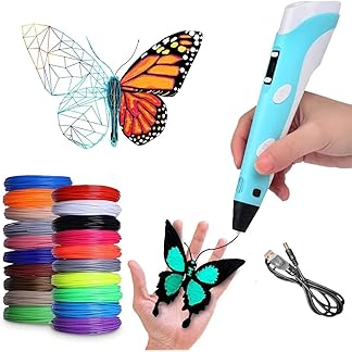 SHISHI 3D Printing Pen with Display – Includes 3D Pen, 3 Starter Colors of PLA Filament, Stencil Book + Project Guide, and Charger