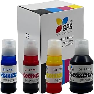 GPS 71 / GI 71 Ink Refill for Canon Printers – Compatible with PIXMA G1020, G2020, G3020, G2021, G2060, G3060 Series – Vibrant Colors Black 135ml, cmy 70ml (Multicolour – GI71)