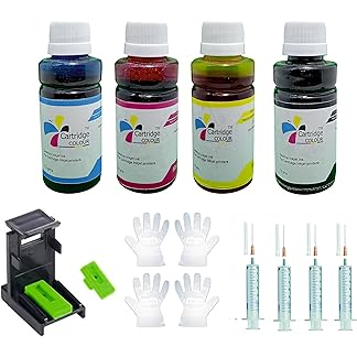 Cartridge COLOUR Refill ink with Suction kit for hp and canon cartridges : Good-Capacity CMYK Ink bottle for hp and canon cartridge printers (70ml)