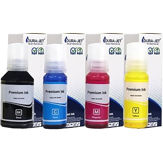 DURA-JET 008 Compatible Refill Pigment Ink for Epson L15150, L15160, L15140, L6490, L6460 Printer – Compatible Ink Bottle for Epson 008 Ink Code (70gm x C/M/Y)(120gm x Bk) – Ink Bottle Set – 504016