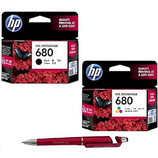 HP 680 Ink Cartridge (Black & Colour) (Set of 2) with 3in1 Multi-Function Mobile Phone Stand, Stylus Pen, Anti-Metal Texture Rotating Ballpoint Pen (Very Colors)