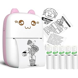 MOROVIK Mini Bluetooth Thermal Printer, Portable Label Printer Inkfree Printer for Android & iOS System, Black on White Thermal Printer with 10 Roll of Print Paper, Stickers, (Mini Printer-Type B)